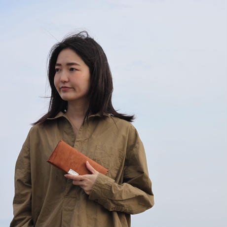 It is a long wallet with a simple design that draws out the presence of "tin" at the center by minimizing stitches.
